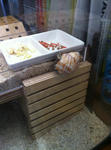 水槽は家に有ったのを使い、サンゴ砂と餌だけペットショップで購入。その他諸々は百均とか仕事場の破材なんかを再利用で。